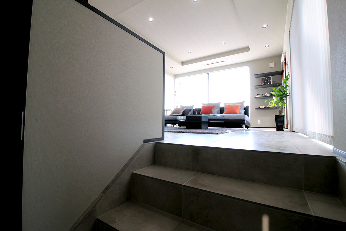 また、こちらのモデルハウスで特徴的なのが収納スペース。リビングの下を高さ140センチ以内の半地下にするこで建坪に入れずに約14畳ほどの広いスペースを設けることができました。これにより無駄無く有効的に収納庫を確保しています。